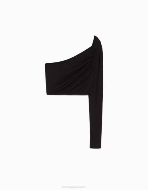 女性 Bershka アシンメトリー長袖Tシャツ 6044382 衣類 黒