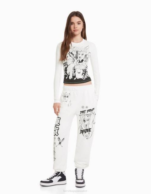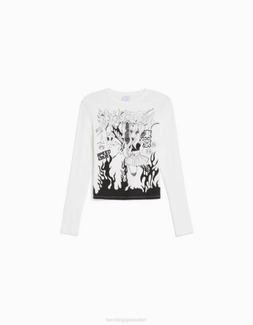 女性 Bershka アニメプリント長袖Tシャツ 6044644 衣類 エクスクルーシブ