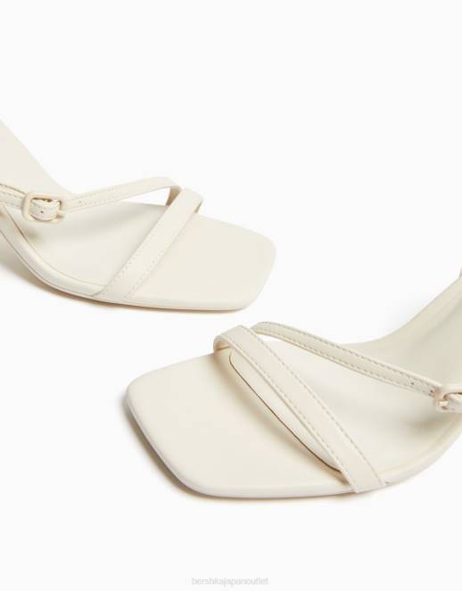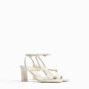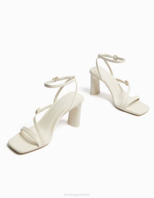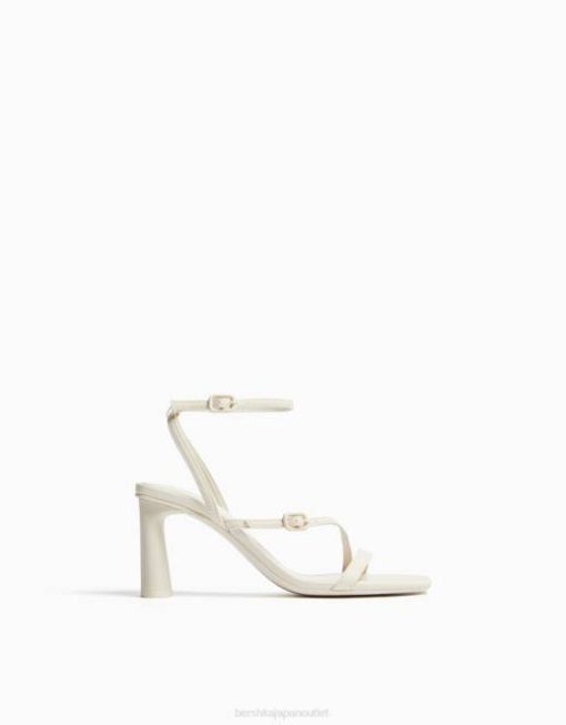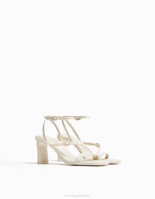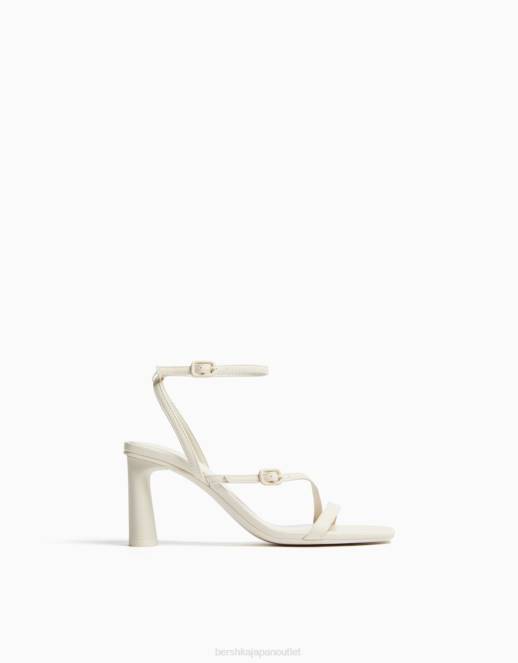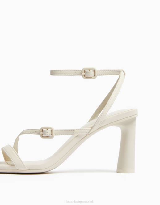 女性 Bershka アンクルストラップ付きハイヒールストラップサンダル 60442143 履物 生成り