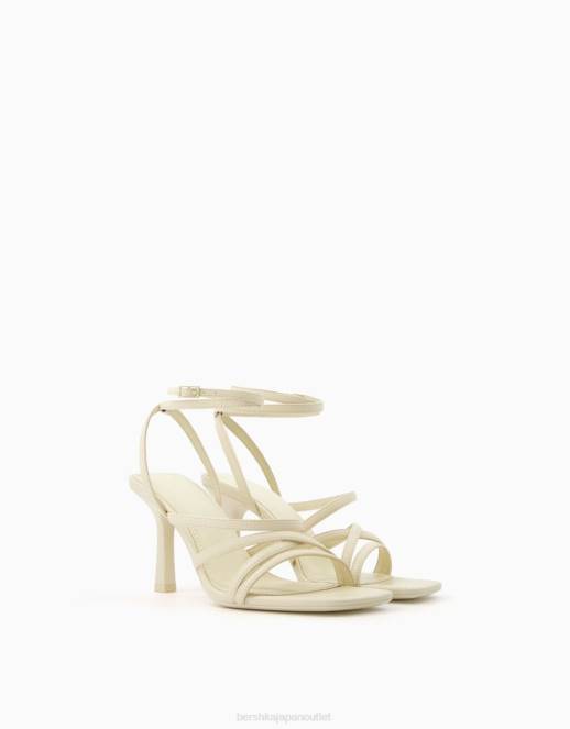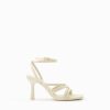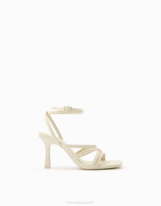 女性 Bershka アンクルストラップ付きハイヒールストラップサンダル 60442151 履物 生成り