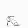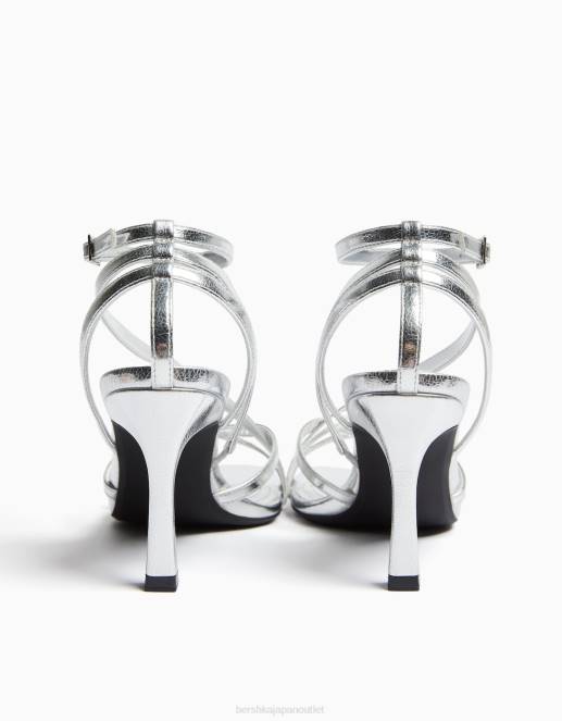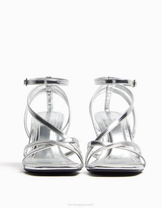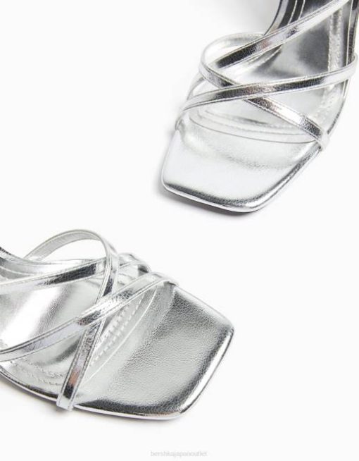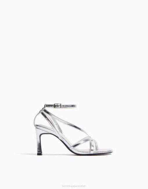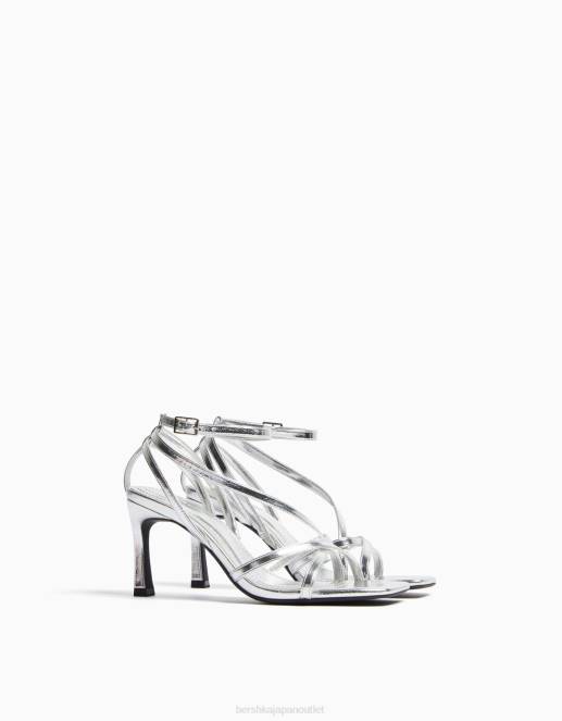 女性 Bershka アンクルストラップ付きハイヒールストラップサンダル 60442177 履物 銀