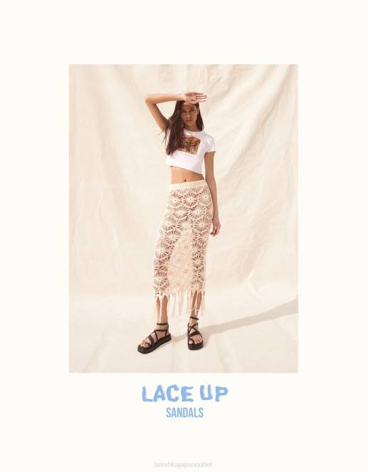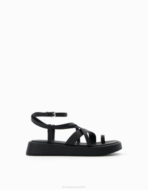 女性 Bershka アンクルストラップ付きフラットミニプラットフォームサンダル 60442213 履物 黒