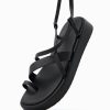 女性 Bershka アンクルストラップ付きフラットミニプラットフォームサンダル 60442239 履物 黒