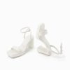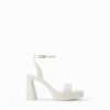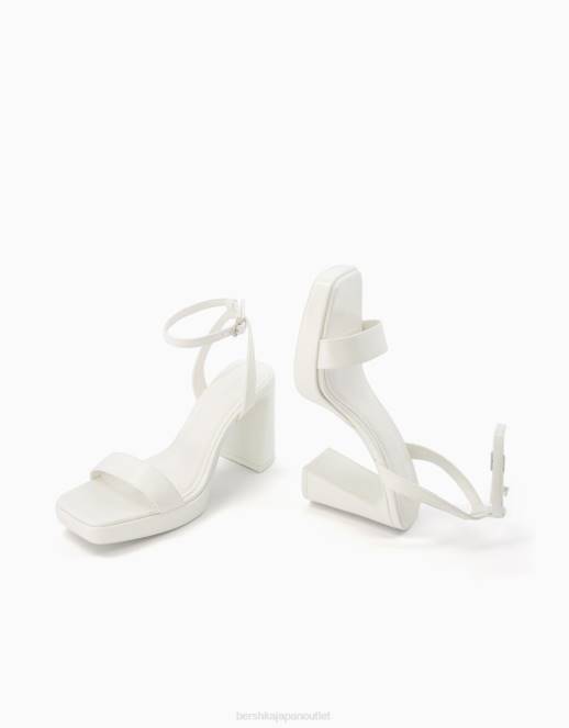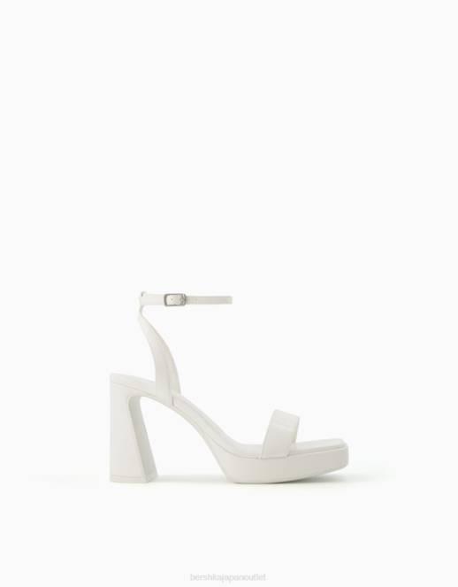 女性 Bershka アンクルストラップ付きミニプラットフォームサンダル 60442148 履物 白