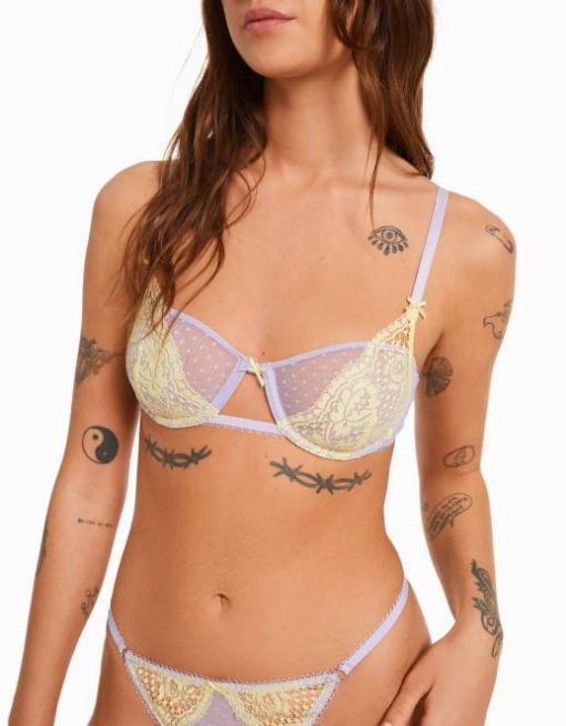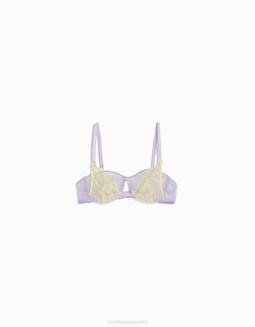 女性 Bershka アンダーワイヤー付きパステルレースブラ 60441745 衣類 バイオレット