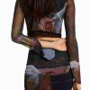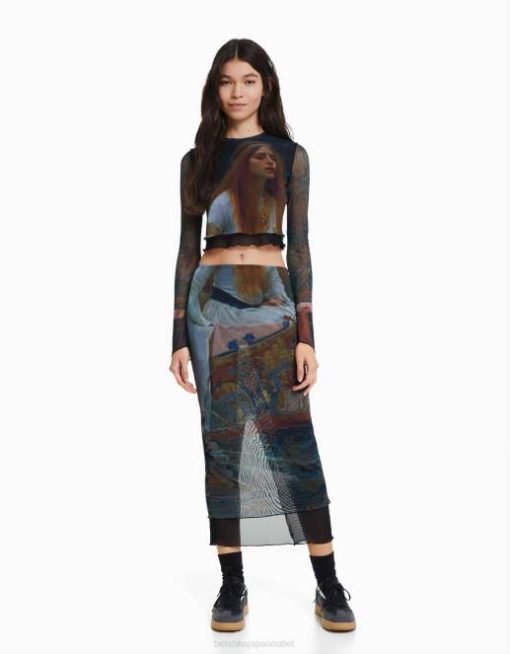 女性 Bershka アートシリーズプリントロングスリーブTシャツ 6044487 衣類 黒