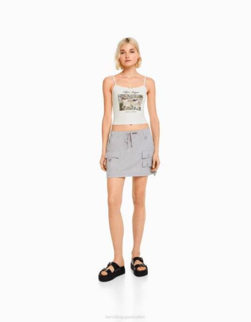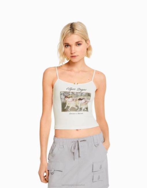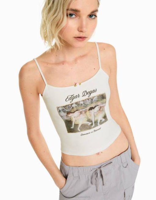 女性 Bershka アート シリーズ プリント ノースリーブ トップ 6044440 衣類 オフホワイト