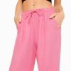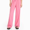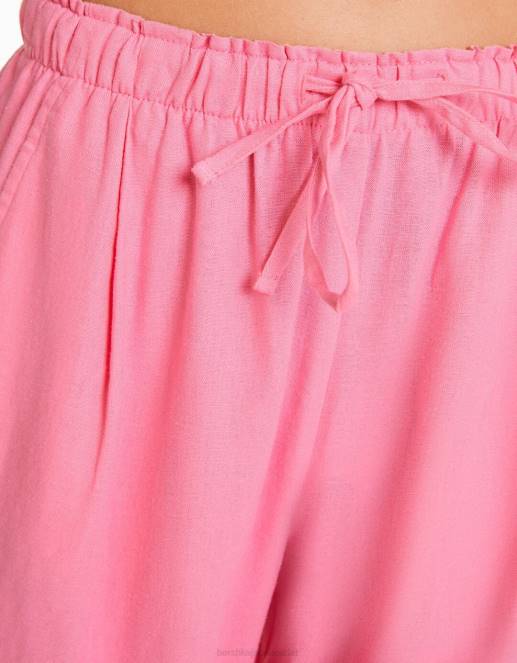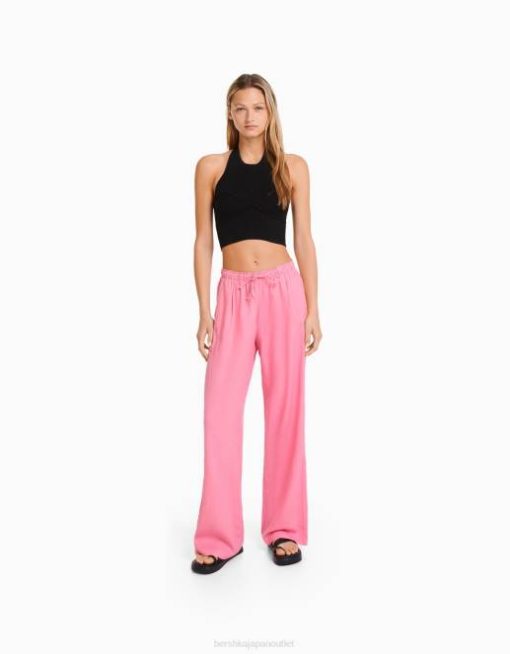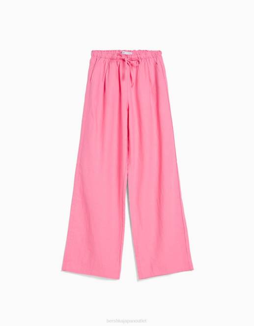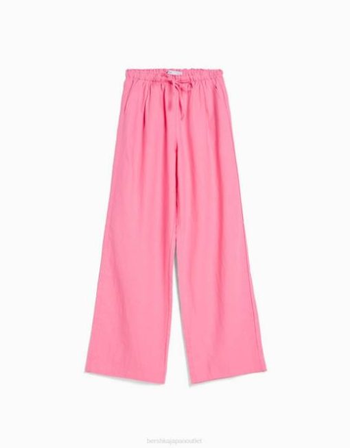 女性 Bershka ウエストギャザー付きリネンブレンドワイドパンツ 60441456 衣類 ピンク