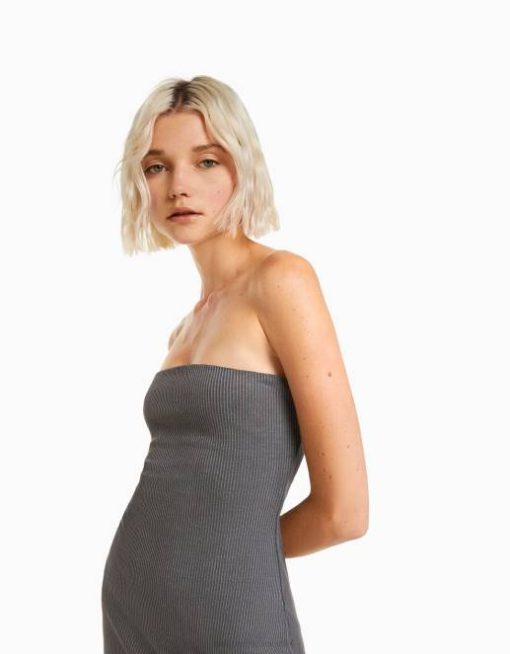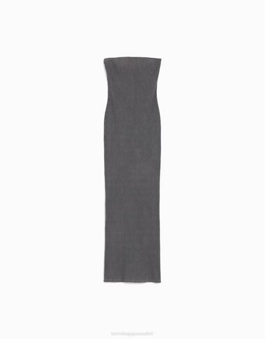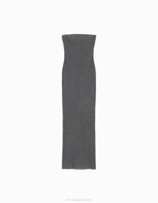 女性 Bershka ウォッシュ加工を施したロングバンドゥリブドレス 604445 衣類 グレー