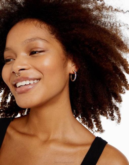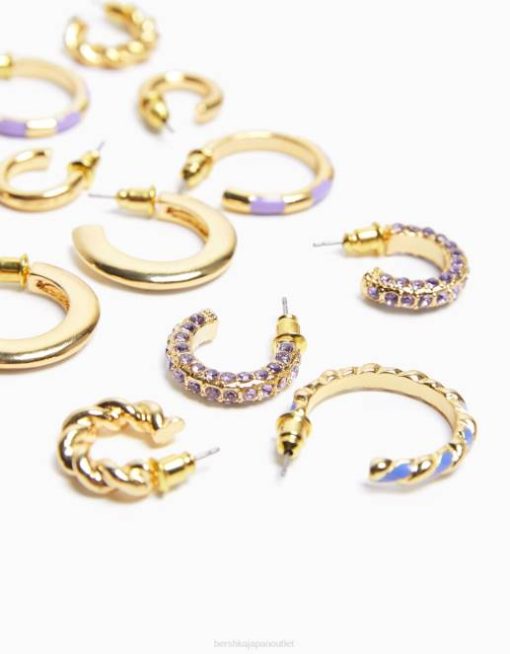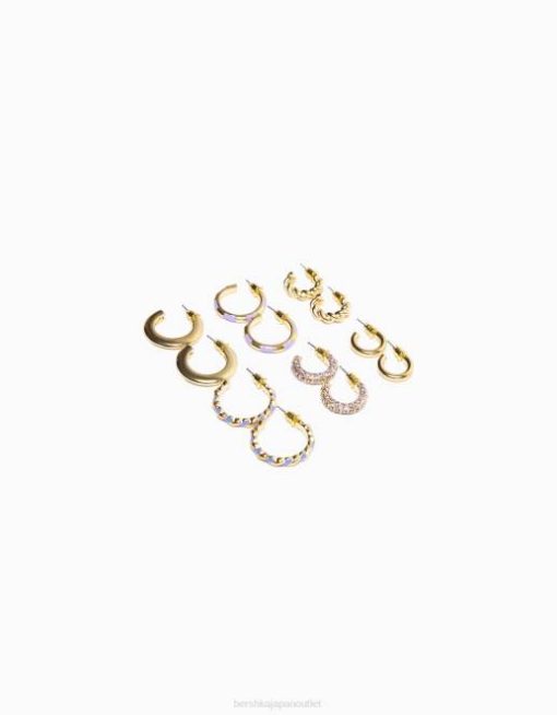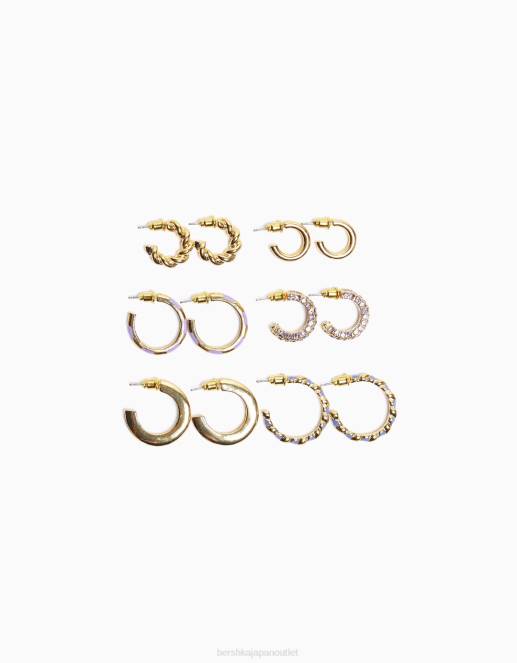 女性 Bershka エナメルラインストーンフープイヤリング6個セット 60442493 アクセサリー 金