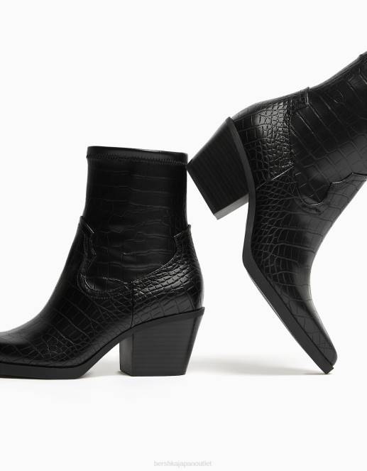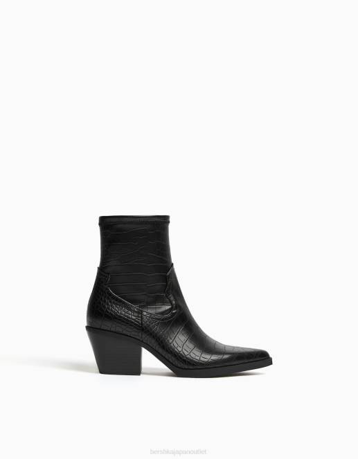 女性 Bershka エンボスアニマルプリント カウボーイブーツ 60441939 履物 黒