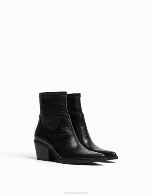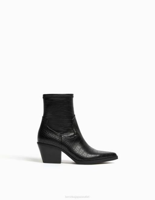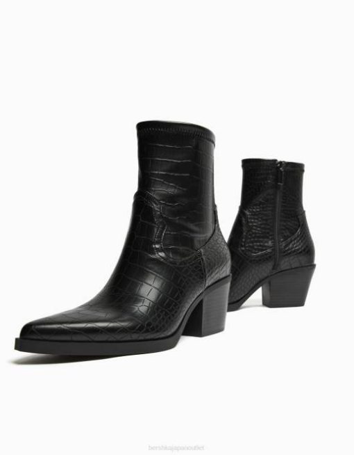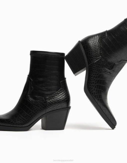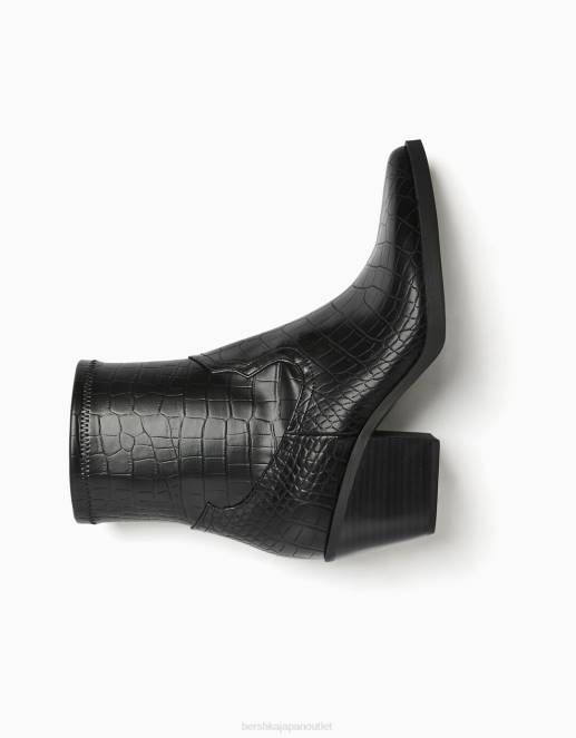女性 Bershka エンボスアニマルプリント カウボーイブーツ 60442302 履物 黒