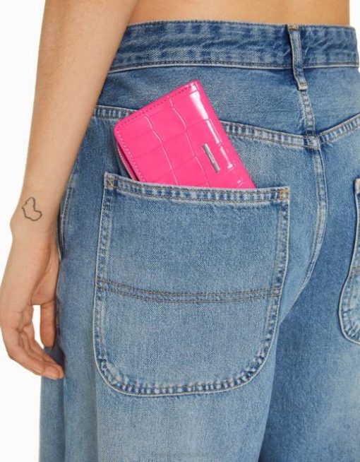 女性 Bershka エンボスフェイクパテント アニマルプリント ハンドバッグ 60442369 アクセサリー ピンク