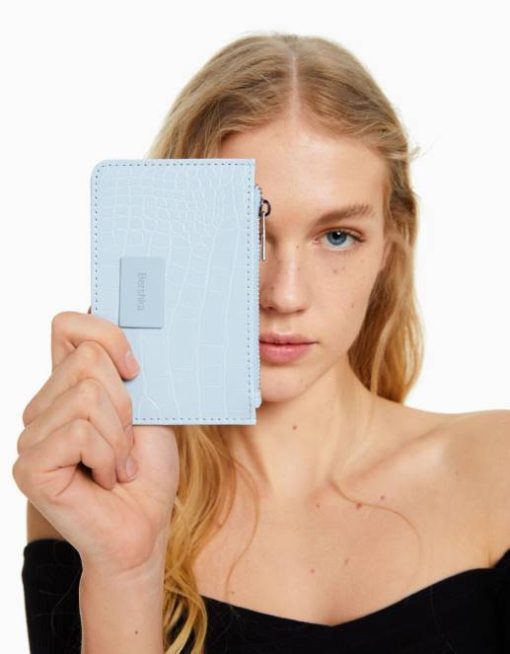 女性 Bershka エンボスプレート付きアニマル柄カードホルダー 60442377 アクセサリー ライトブルー