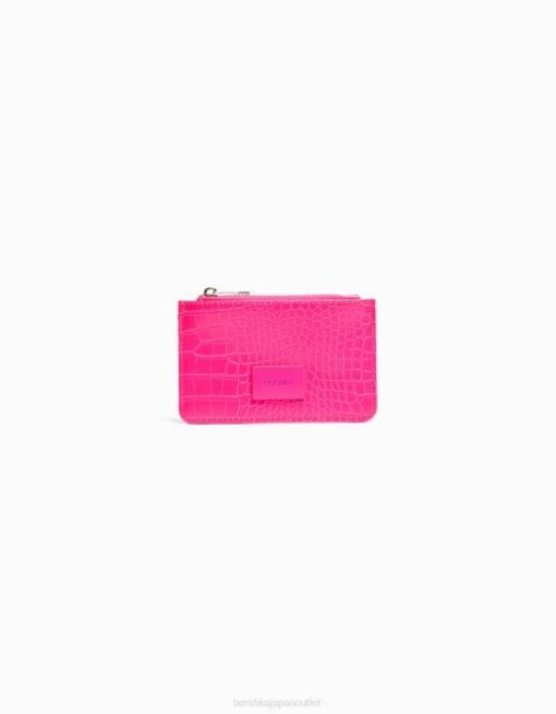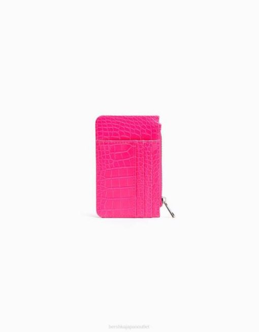 女性 Bershka エンボスプレート付きアニマル柄カードホルダー 60442379 アクセサリー ピンク