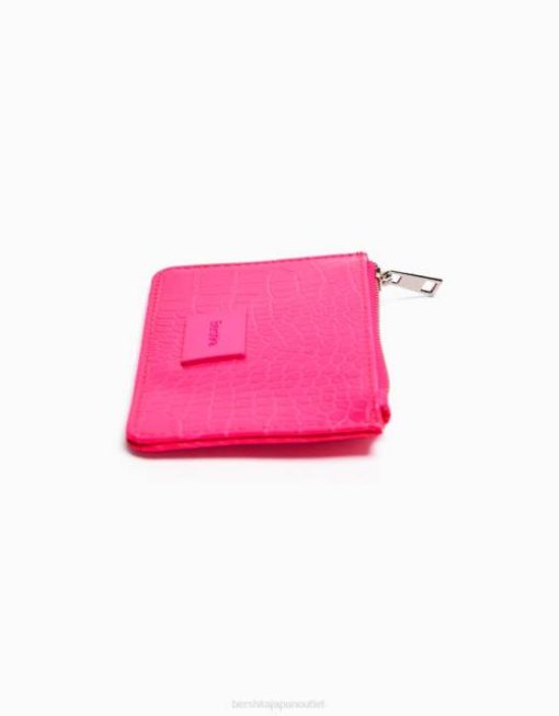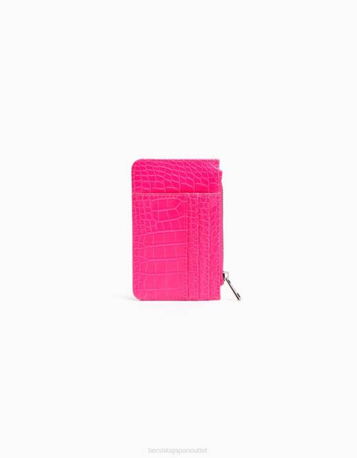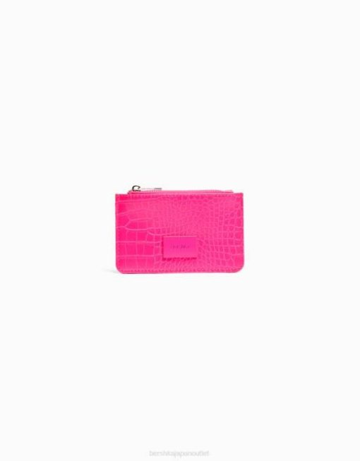 女性 Bershka エンボスプレート付きアニマル柄カードホルダー 60442376 アクセサリー ピンク