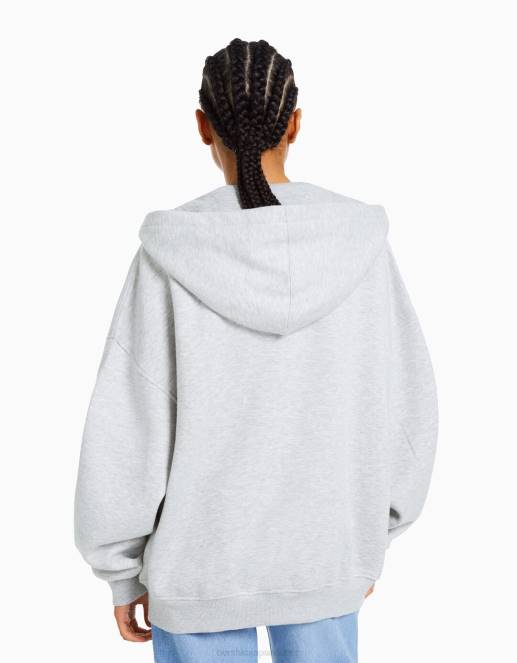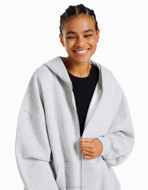 女性 Bershka オーバーサイズのジッパー付きパーカー 60441227 衣類 グレー
