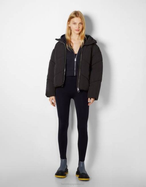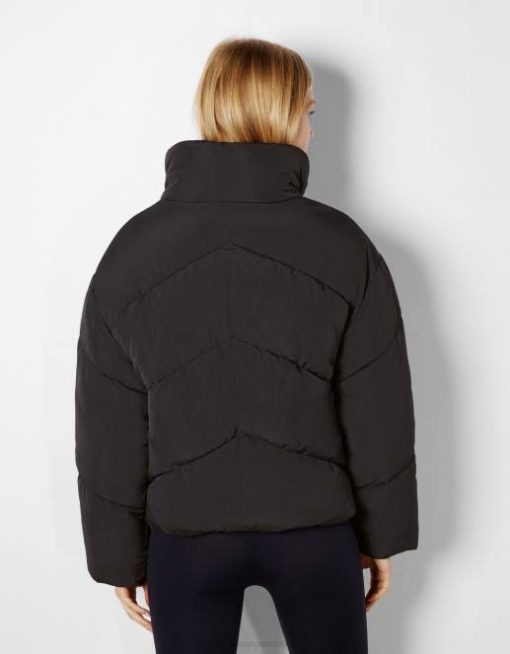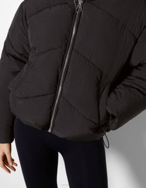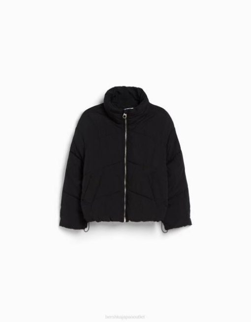 女性 Bershka オーバーサイズナイロンパファージャケット 60441127 衣類 黒