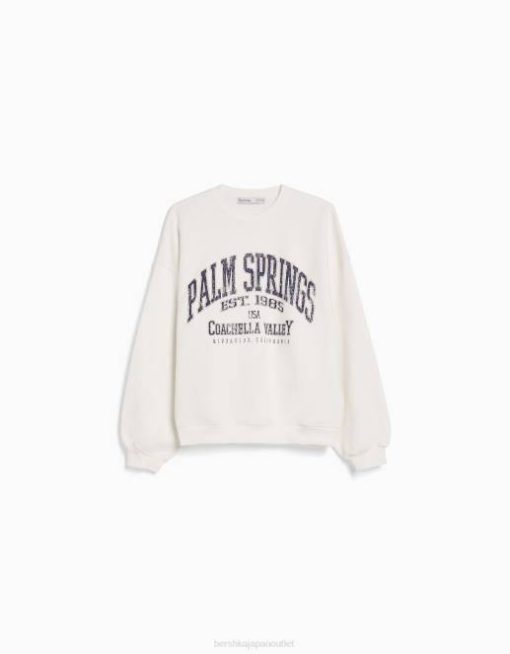 女性 Bershka オーバーサイズプリントスウェットシャツ 60441220 衣類 白