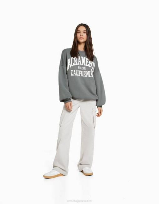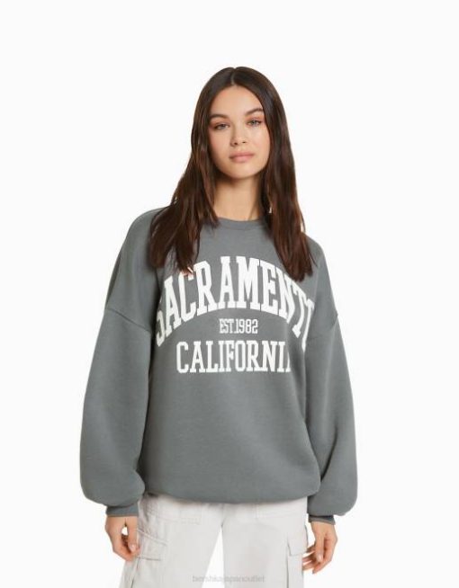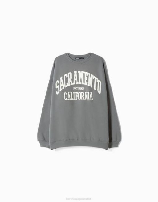 女性 Bershka オーバーサイズプリントスウェットシャツ 60441216 衣類 グレー