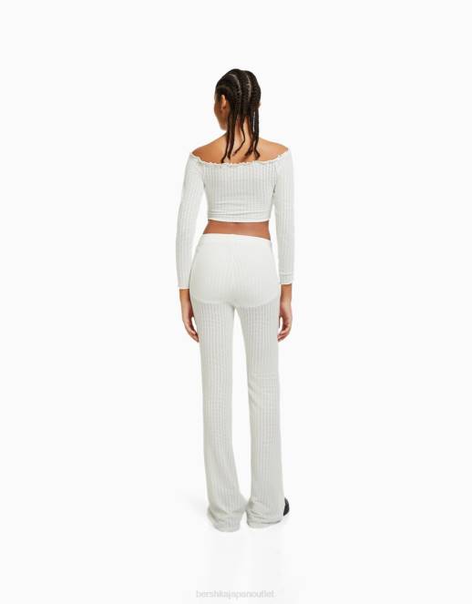 女性 Bershka オープンニットフレアパンツ 60442041 衣類 クリーム