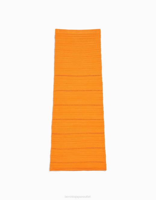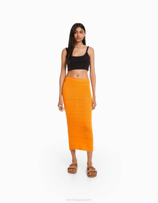 女性 Bershka オープンニットミディスカート 60441883 衣類 オレンジ