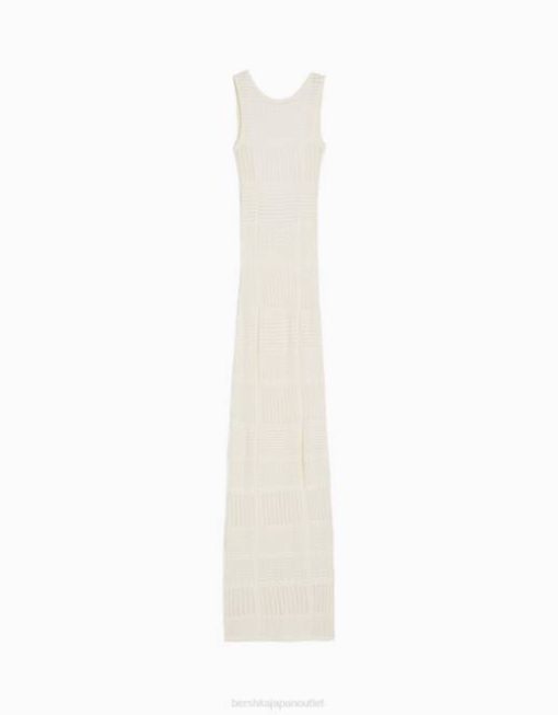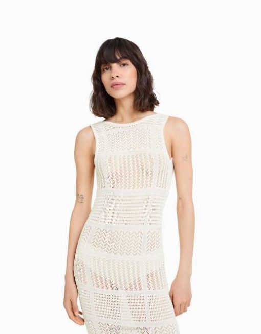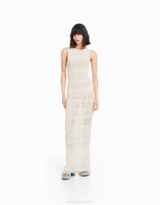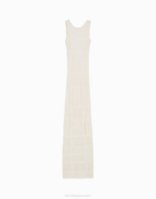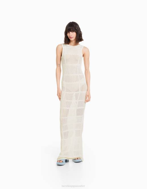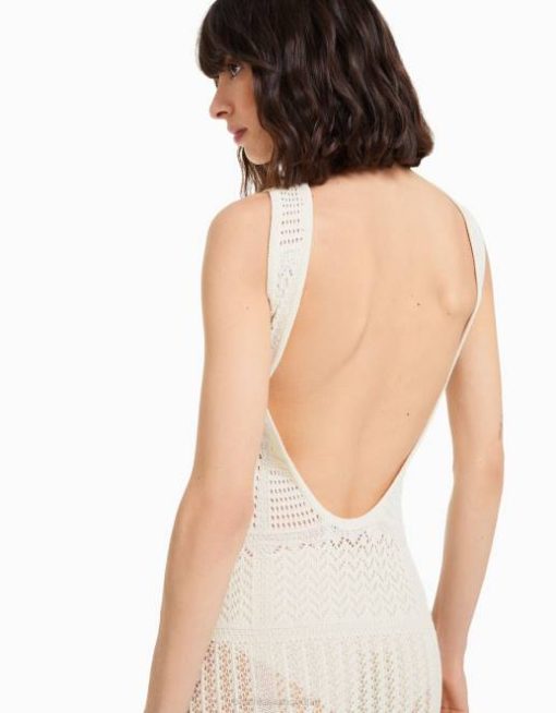 女性 Bershka オープンバック カットワーク ミディドレス 60441852 衣類 クリーム