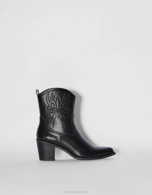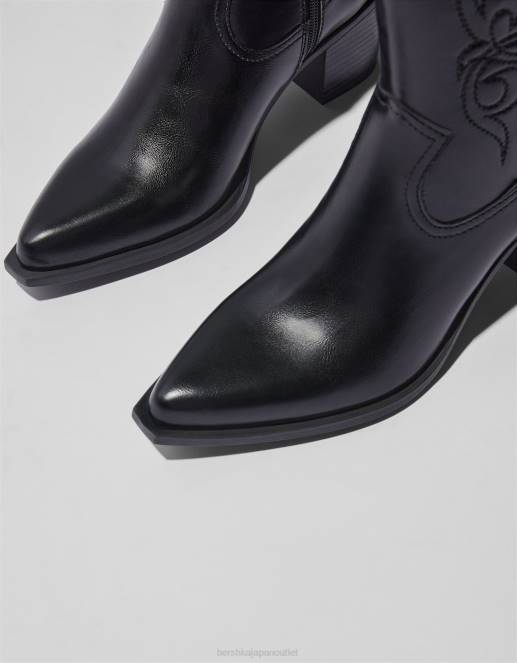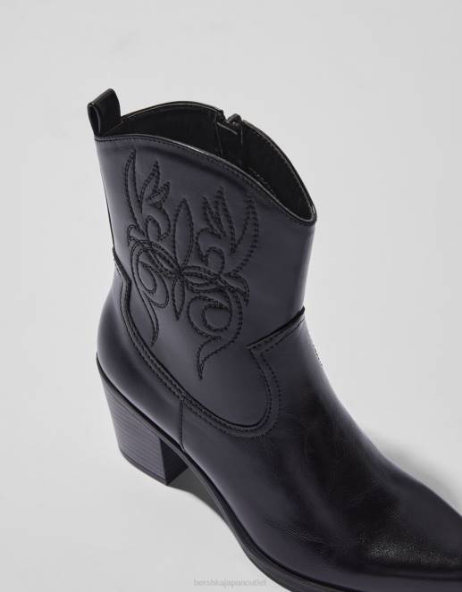 女性 Bershka カウボーイハイヒールアンクルブーツ 60442329 履物 黒