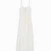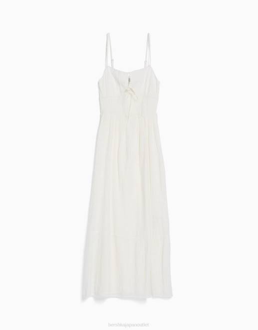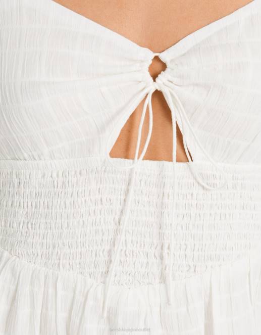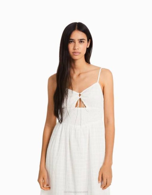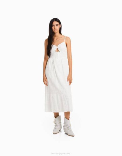 女性 Bershka カットアウトとフリル付きストラップ付きミディドレス 604466 衣類 白