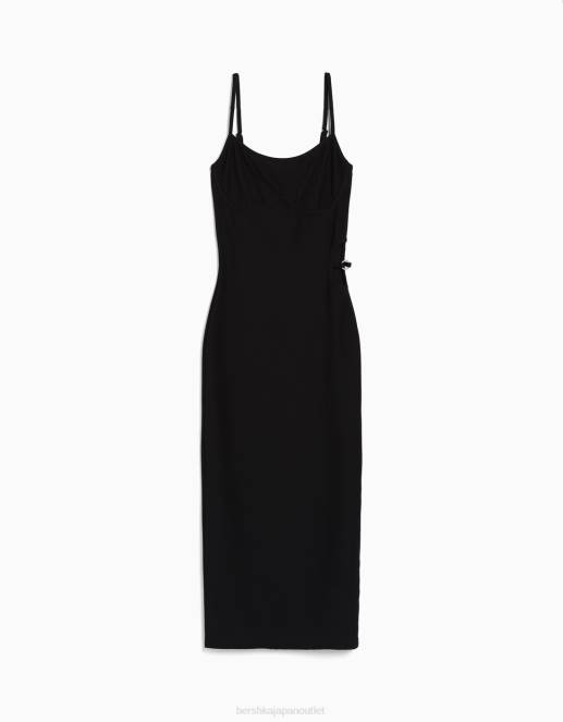 女性 Bershka カットアウトディテール付きのロングストラップフィットリブドレス 604410 衣類 黒