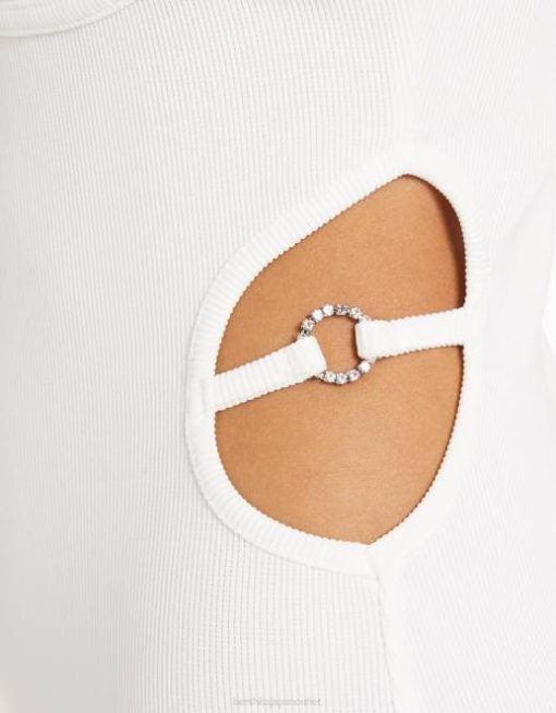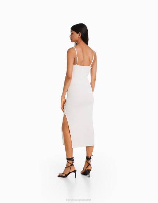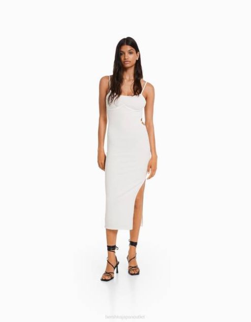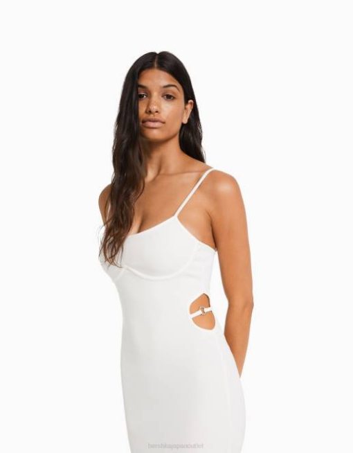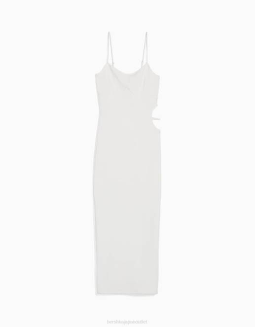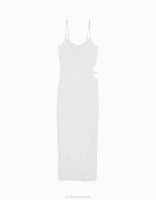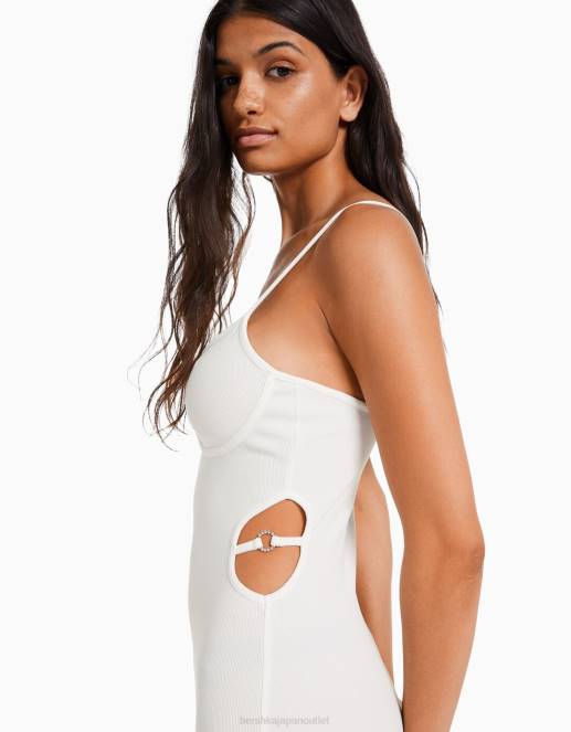 女性 Bershka カットアウトディテール付きのロングストラップフィットリブドレス 60448 衣類 白
