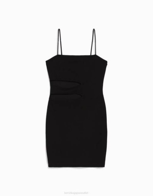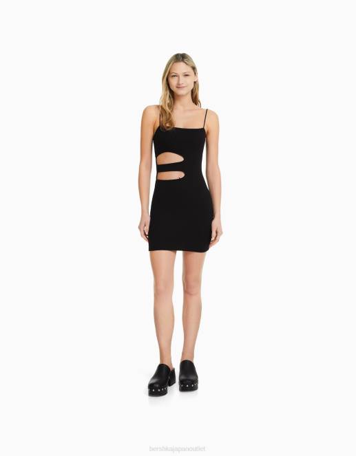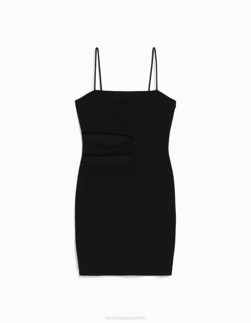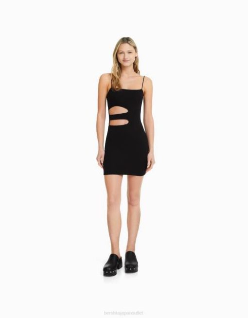 女性 Bershka カットアウトディテール付きストラップミニドレス 6044228 衣類 黒