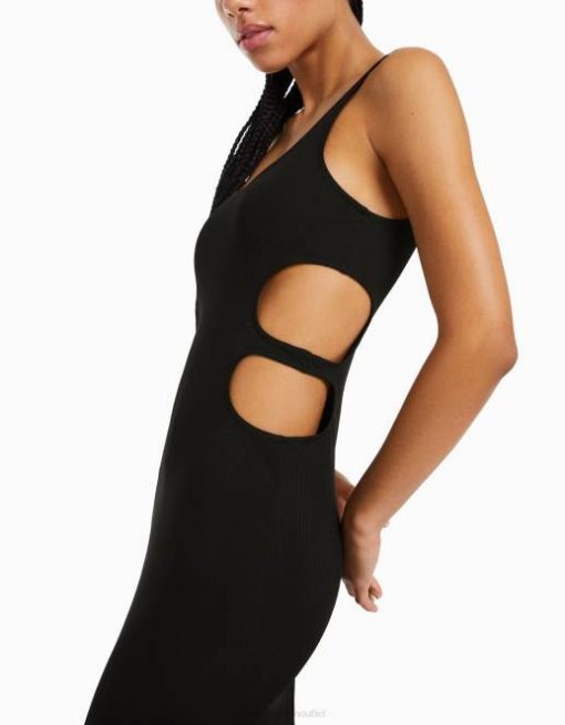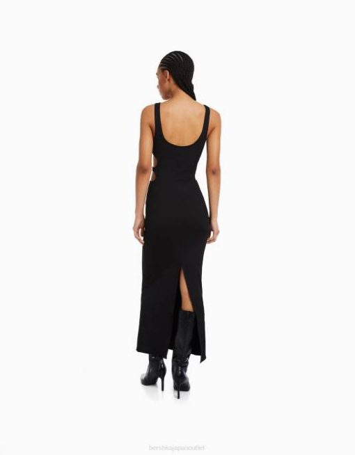 女性 Bershka カットアウト ミディドレス 6044232 衣類 黒