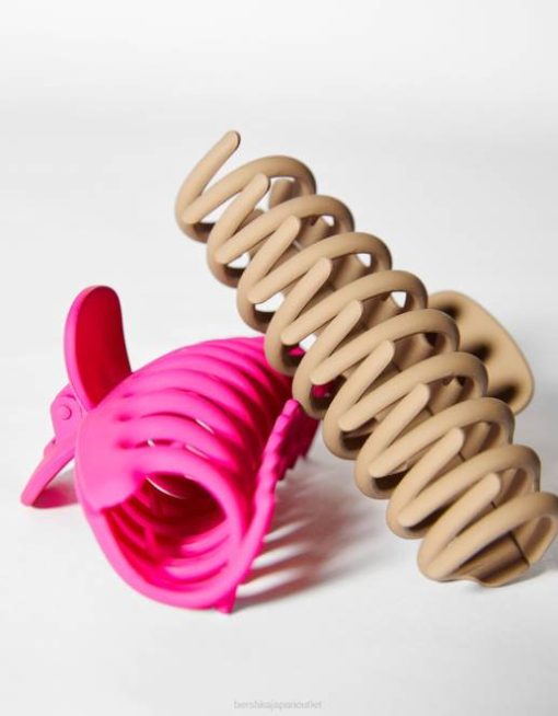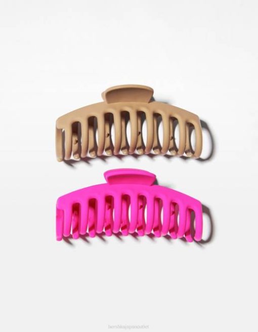 女性 Bershka カラーヘアクリップ2個セット 60442567 アクセサリー フクシア