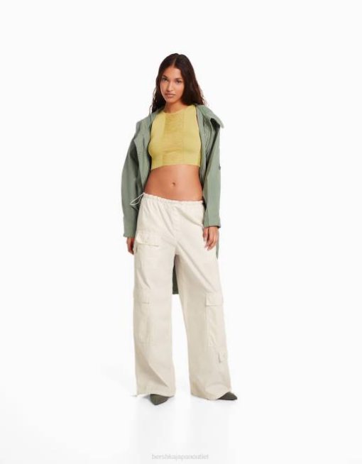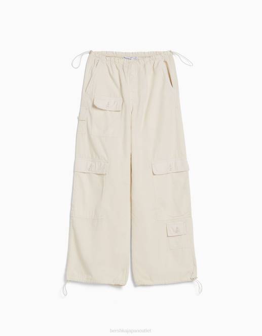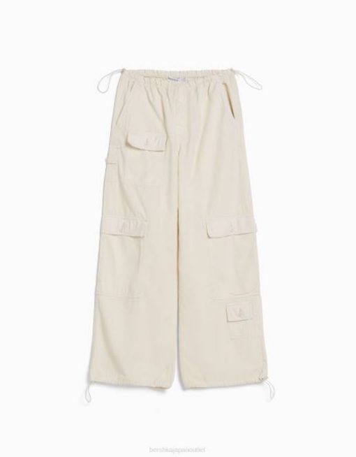 女性 Bershka カーゴパラシュートパンツ 60441300 衣類 オフホワイト