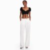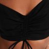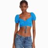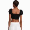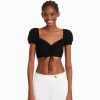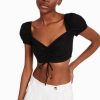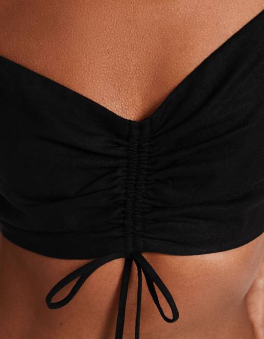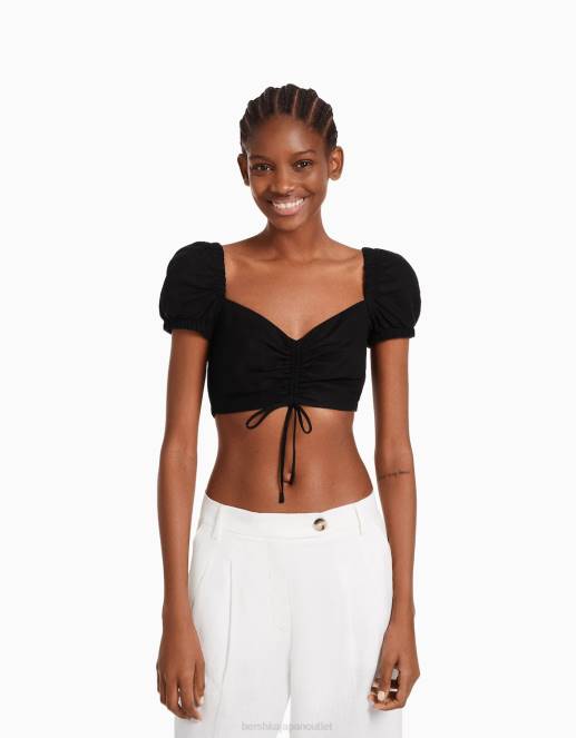女性 Bershka ギャザーディテール付き半袖リネンブレンドクロップトップ 6044774 衣類 黒