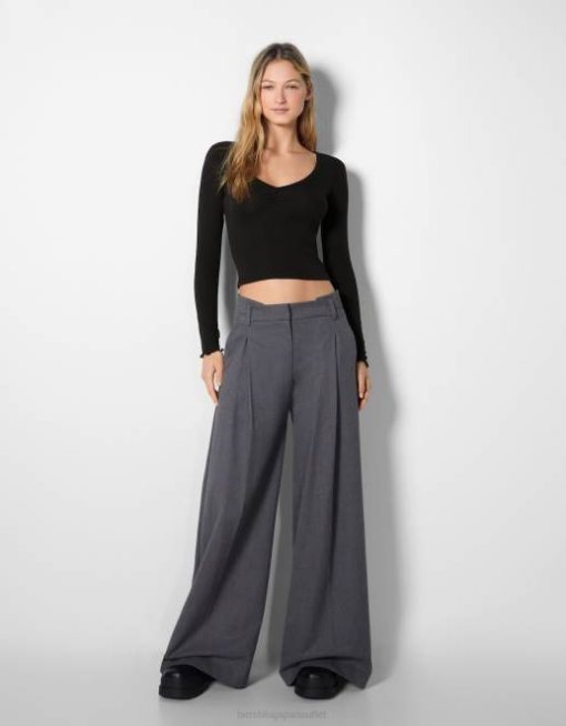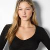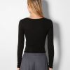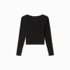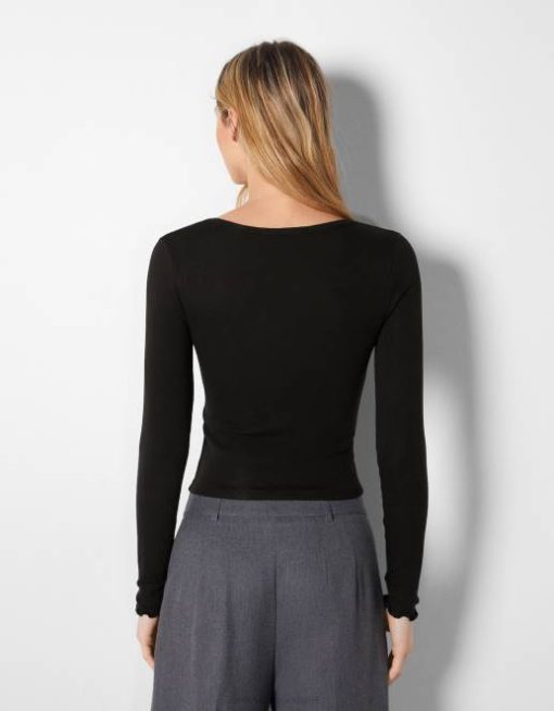女性 Bershka ギャザーVネックの長袖Tシャツ 6044547 衣類 黒
