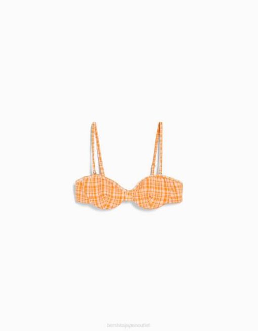 女性 Bershka ギンガムチェックビキニトップ 60441799 衣類 オレンジ