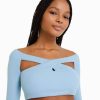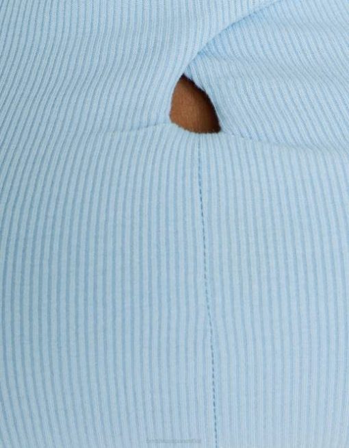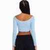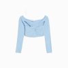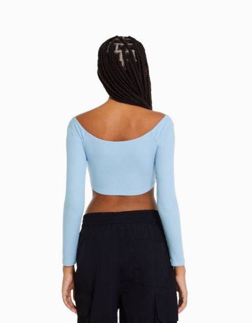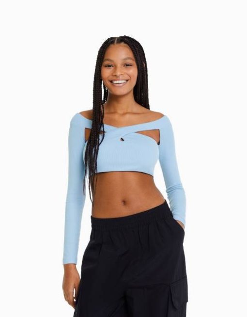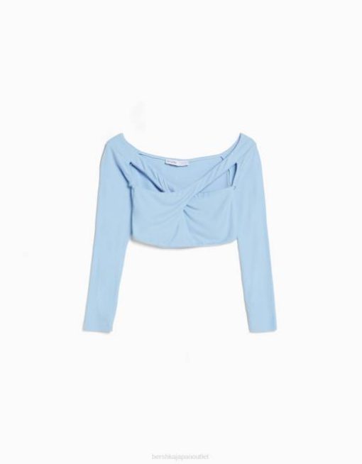 女性 Bershka クロスオーバーネックラインの長袖Tシャツ 6044416 衣類 ライトブルー