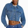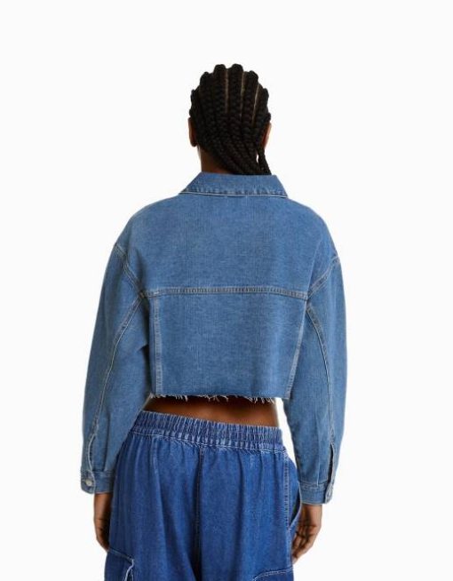女性 Bershka クロップドデニムジャケット 60442021 衣類 青