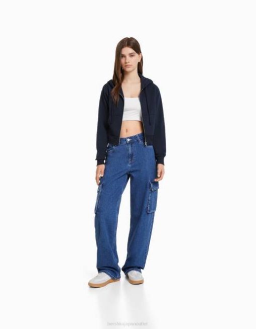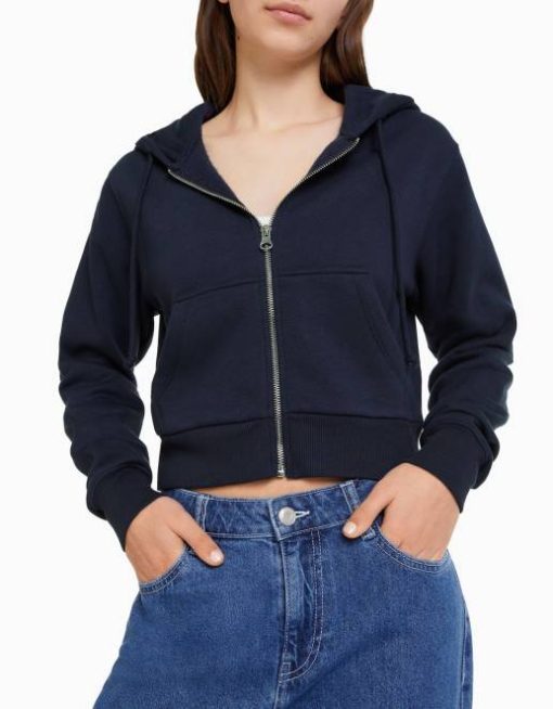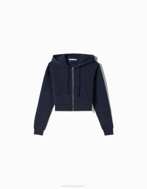 女性 Bershka クロップド ジップアップ パーカー 60441267 衣類 海軍