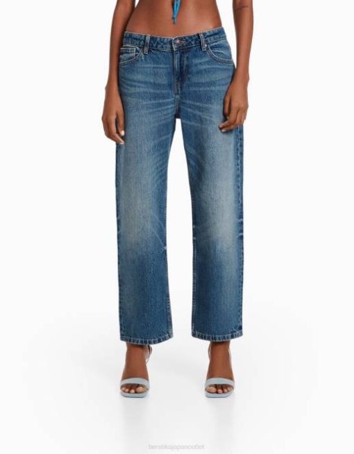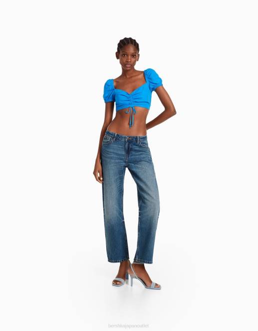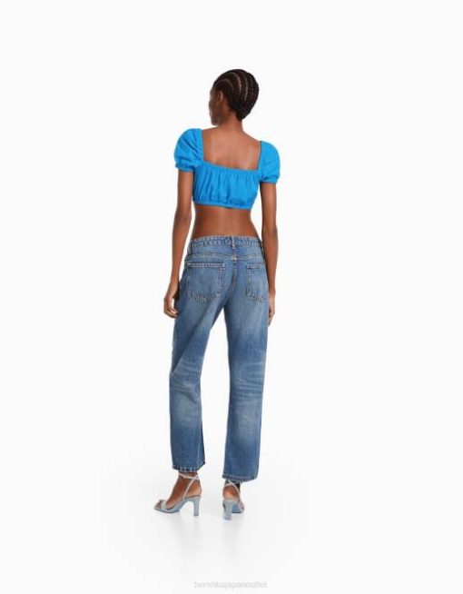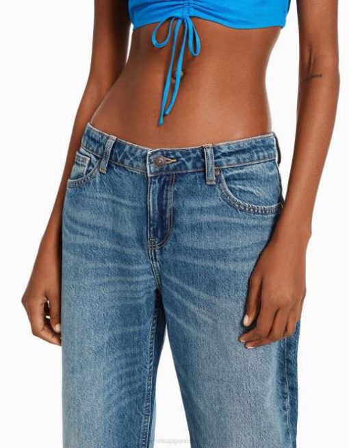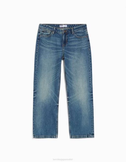 女性 Bershka クロップド ストレート ローライズジーンズ 60441550 衣類 洗い流された青