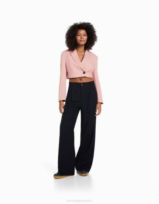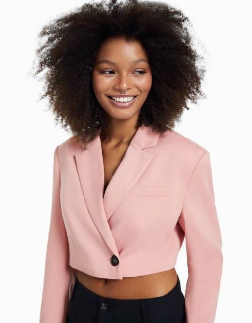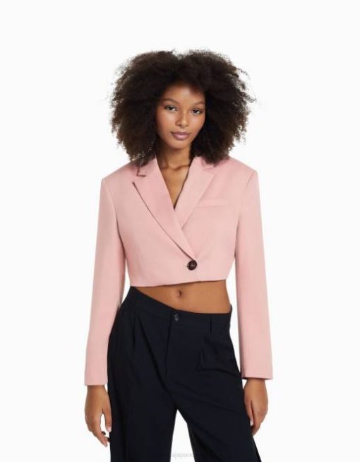 女性 Bershka クロップド テーラードツイル ブレザー 60442009 衣類 ピンク