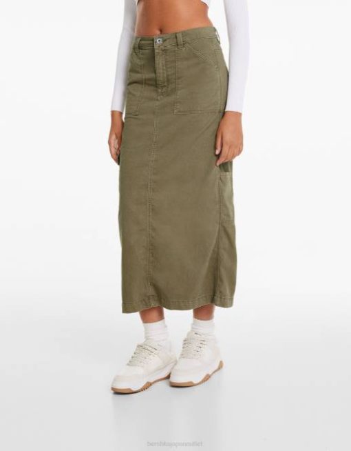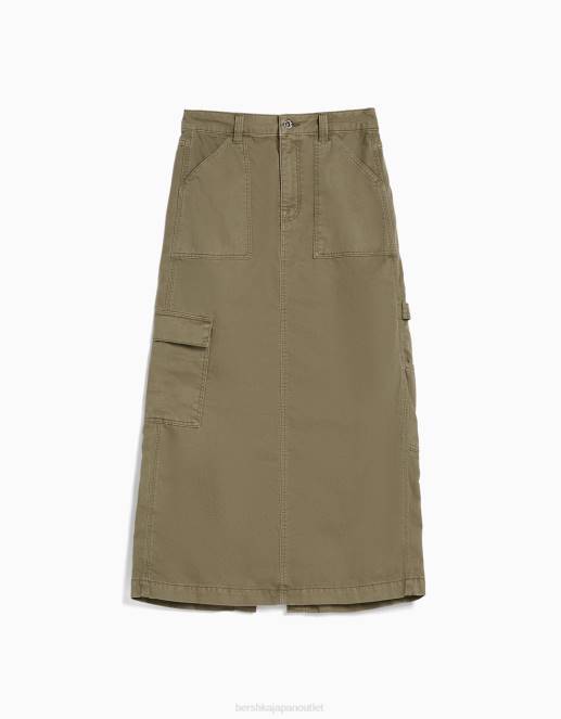 女性 Bershka コットンカーペンターミディスカート 60441372 衣類 カーキ