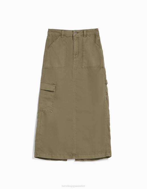 女性 Bershka コットンカーペンターミディスカート 60444063 衣類 カーキ