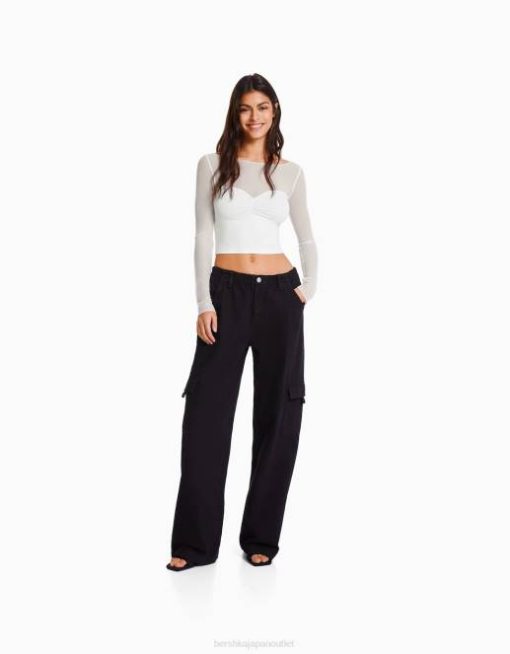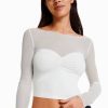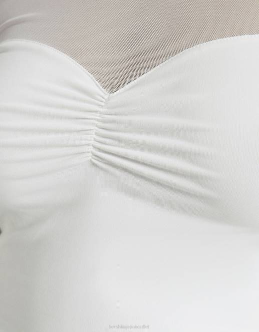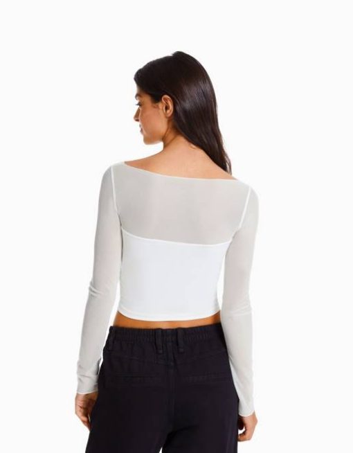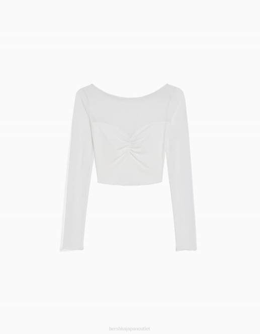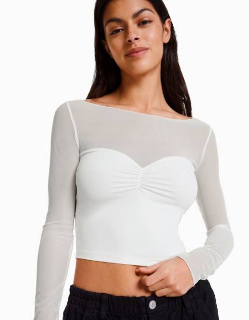 女性 Bershka コントラストのある生地を使用した長袖クロップドTシャツ 6044498 衣類 白