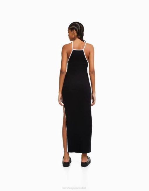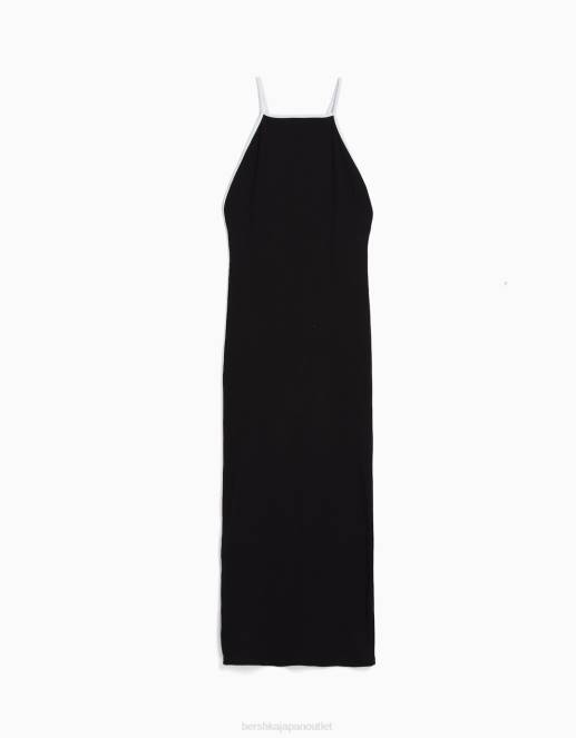 女性 Bershka コントラストストラップ付きミディドレス 6044192 衣類 黒
