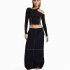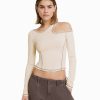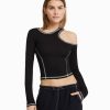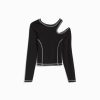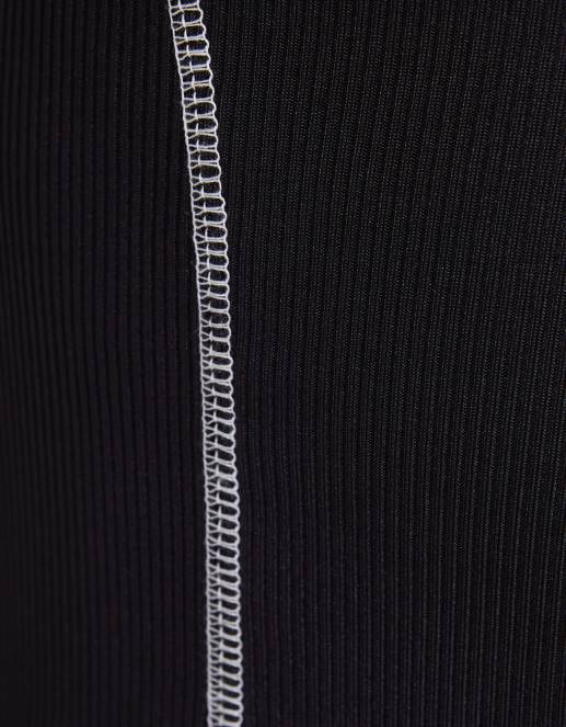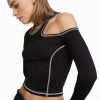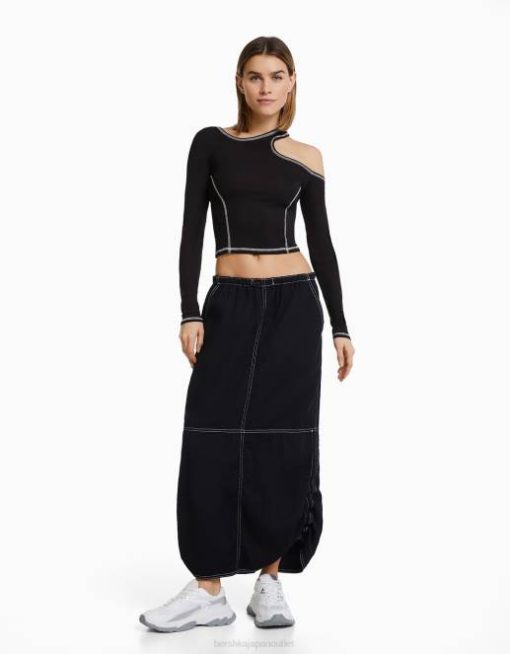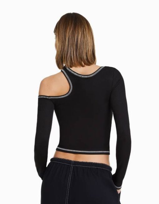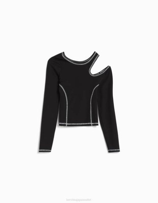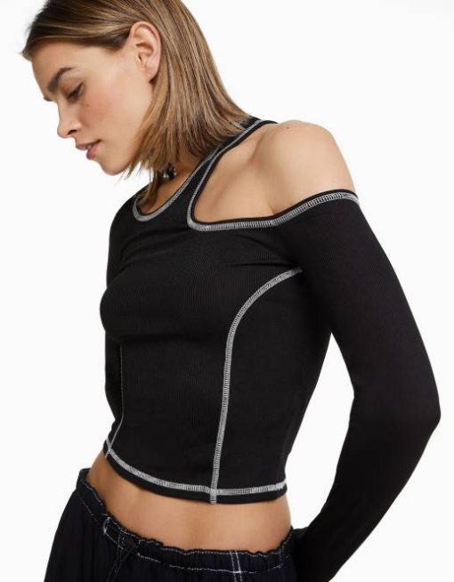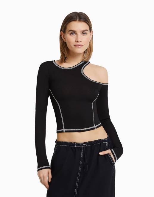 女性 Bershka コントラストスレッドフィット ロングスリーブTシャツ 6044373 衣類 黒