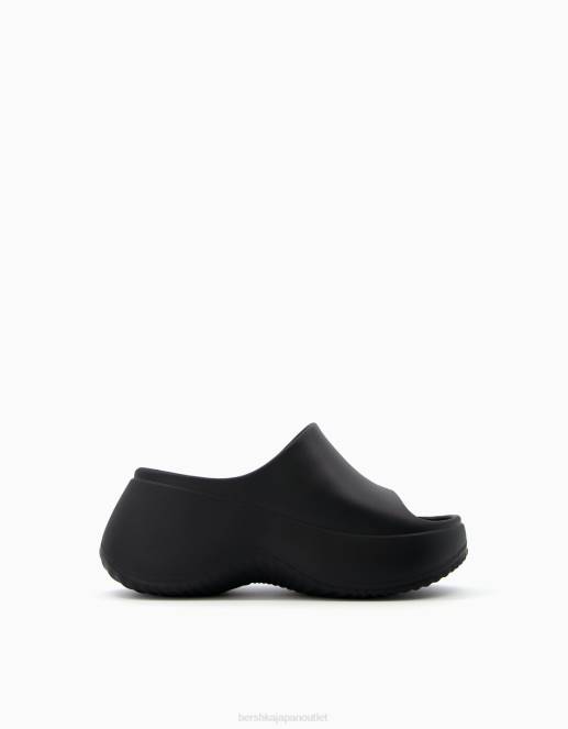 女性 Bershka ゴム引きプラットフォームサンダル 60442223 履物 黒