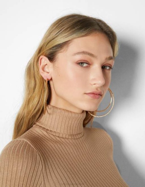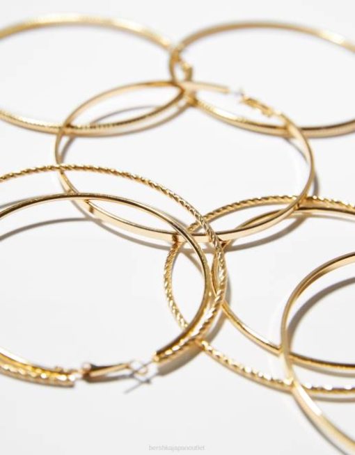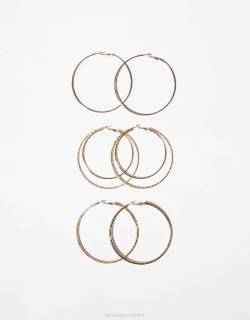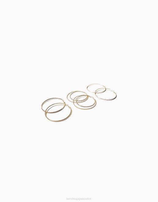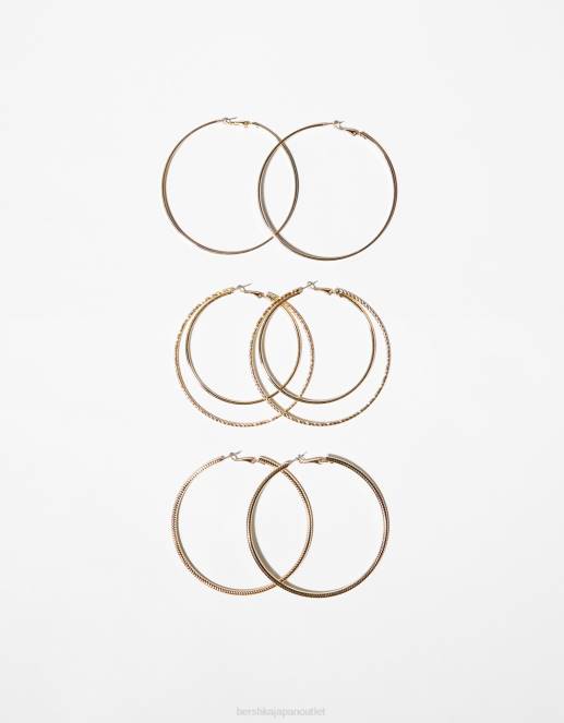 女性 Bershka ゴールドエフェクト マキシ フープ イヤリング 3 ペアのセット 60442510 アクセサリー 金